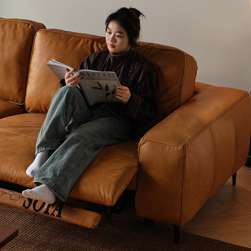 Crafted in premium genuine leather, the Hygge sofa blends modern elegance with intuitive function. Its electric extendable design allows you to adjust seating angles at the touch of a button, offering everything from upright support to a fully relaxed recline. The supple leather surface feels indulgently smooth, while high-density cushioning ensures long-lasting comfort without sagging. Whether in a spacious loft or a cozy apartment, this minimalist yet versatile piece adapts beautifully to any home. With its eco-friendly materials and timeless silhouette, Hygge is where everyday ease meets refined luxury.