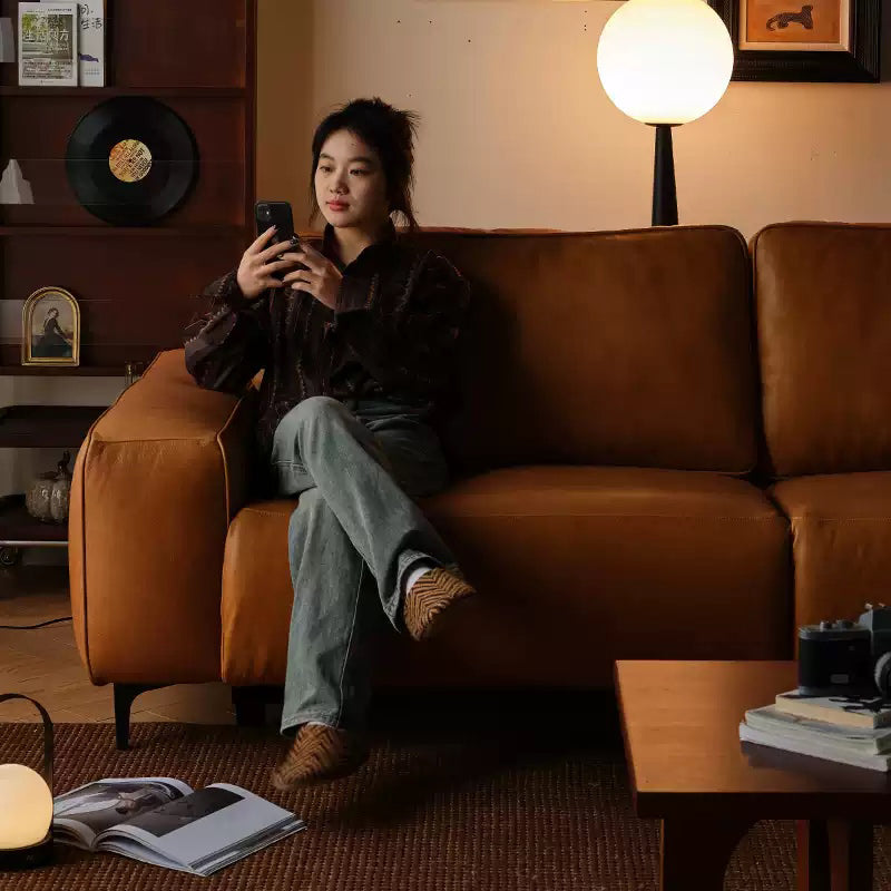 Crafted from full-grain waxed leather, this sofa brings an authentic touch of luxury to your home. Each piece features unique natural textures, with fibers and grain that remain clearly visible. The leather is not only soft and supple to the touch, but also highly durable—boasting 42% tear resistance, excellent colorfastness, and over 20,000 folds of resilience. Its matte finish adds depth and elegance, while the full-leather coverage ensures both beauty and longevity. Designed to withstand daily use while becoming even more characterful with time, this leather offers a perfect balance of refinement and strength.