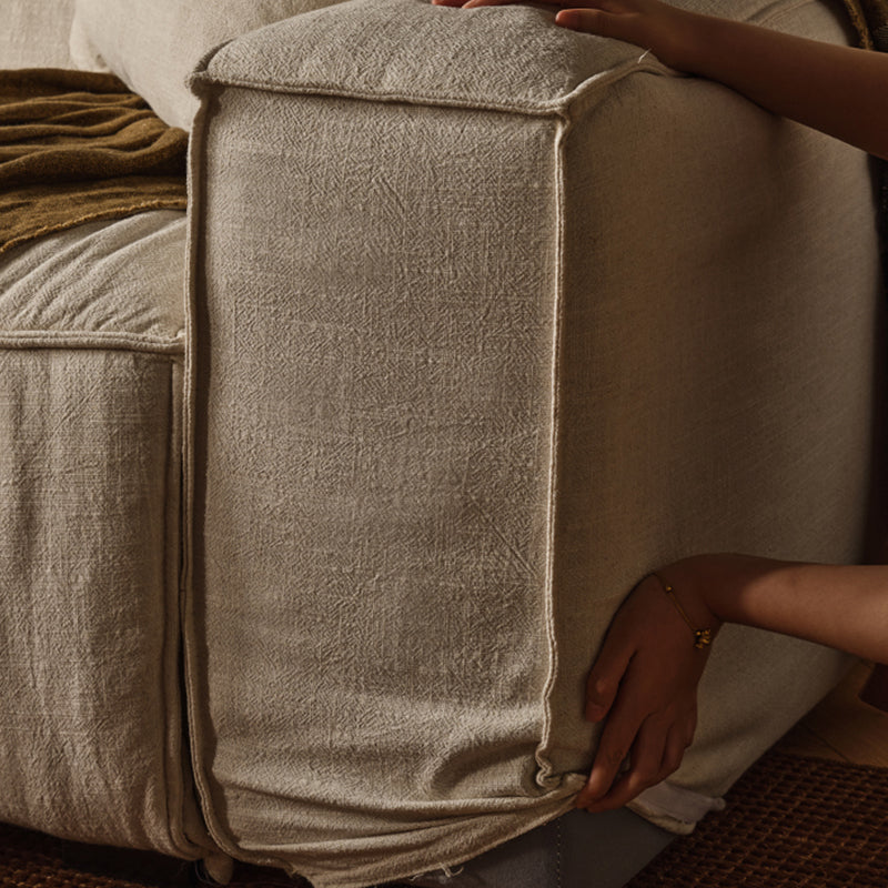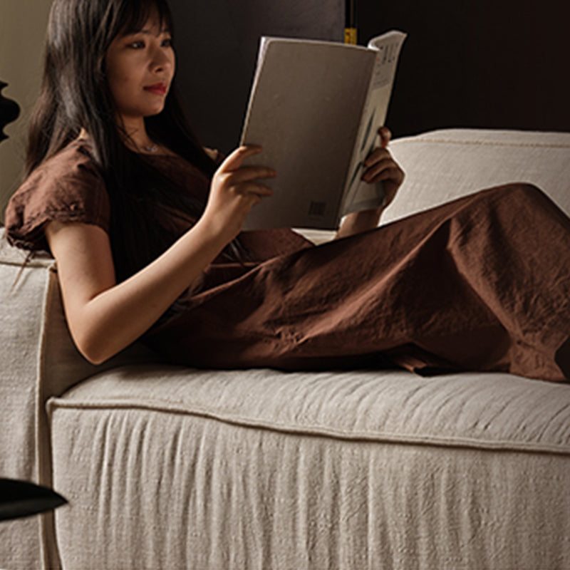 The Kusari Linen sofa embodies the essence of Japanese wabi-sabi serenity—an aesthetic that embraces natural textures, quiet elegance, and the beauty of imperfection. Draped entirely in premium first-layer linen, it offers a tactile softness that invites you to sink in and unwind. Each fiber breathes naturally, carrying the warmth of handwoven craftsmanship and the cool ease of organic material. Its understated silhouette flows effortlessly into any interior, while the linen’s gentle drape captures the poetry of lived-in comfort. This is not merely seating—it’s a sanctuary for slow, mindful moments.