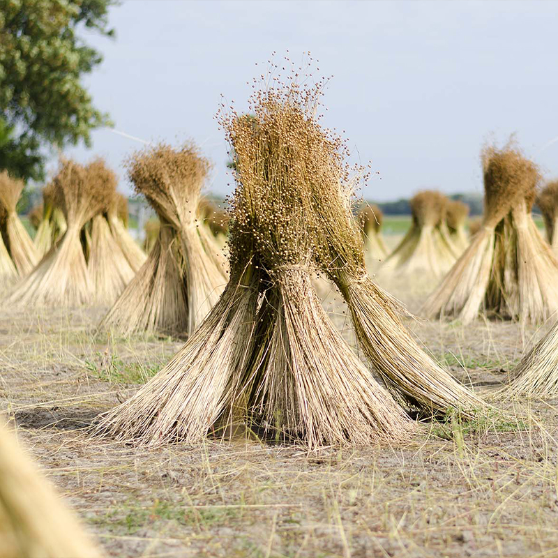 The journey from field to fabric begins in the cool, humid fields of Northwestern Europe—home to ideal dew-retting conditions, where over 80% of the world’s textile flax is grown. Once harvested, flax stalks are laid flat across open fields, where dew and naturally occurring bacteria work in harmony over 3–7 weeks to gently dissolve the plant’s woody core. This slow, deliberate process releases the inner fibers without harsh chemicals or aggressive treatments. The result is a linen of exceptional purity, strength, and longevity—fibers that remain rich in their natural oils, soft in texture, and authentically luxurious.
